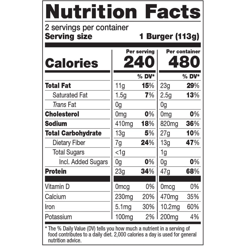 Una gran hamburguesa vegana, sin gluten y sin soya. Pruébela en un wrap o en una ensalada. Es una alternativa deliciosa de cualquier manera que la sirva.